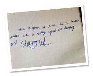 I always wanted to do something amazing. My mum found this in one of her notebooks. From the writing, she says I was probably about 11 or 12. It says, "When I grow up I'm be a famous arties (artist)". I was pretty surprised when she found it. But she wasn’t. My mum says she always knew I was creative.